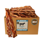 Wholesale box of 12” MONSTER Bradied Bully Sticks